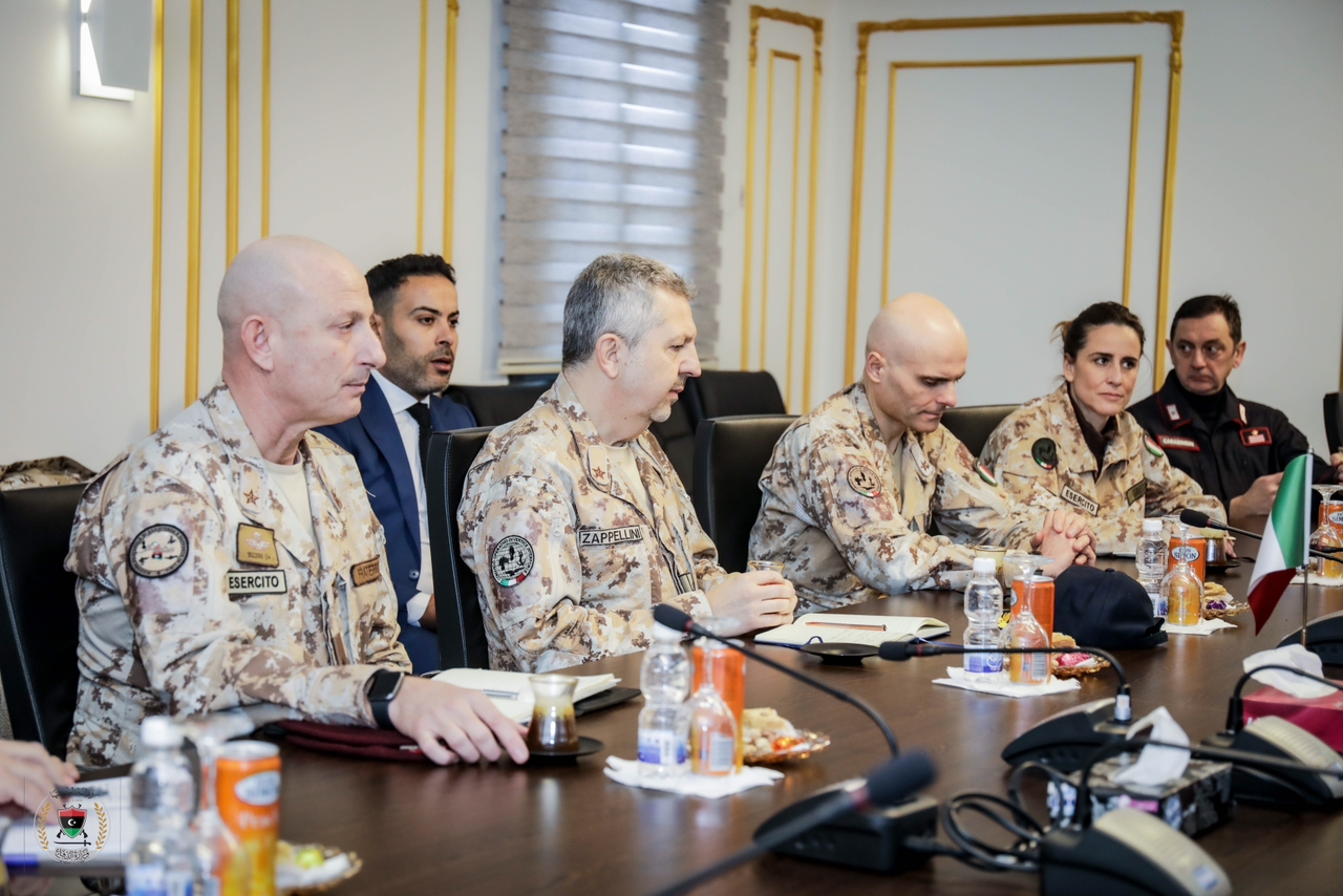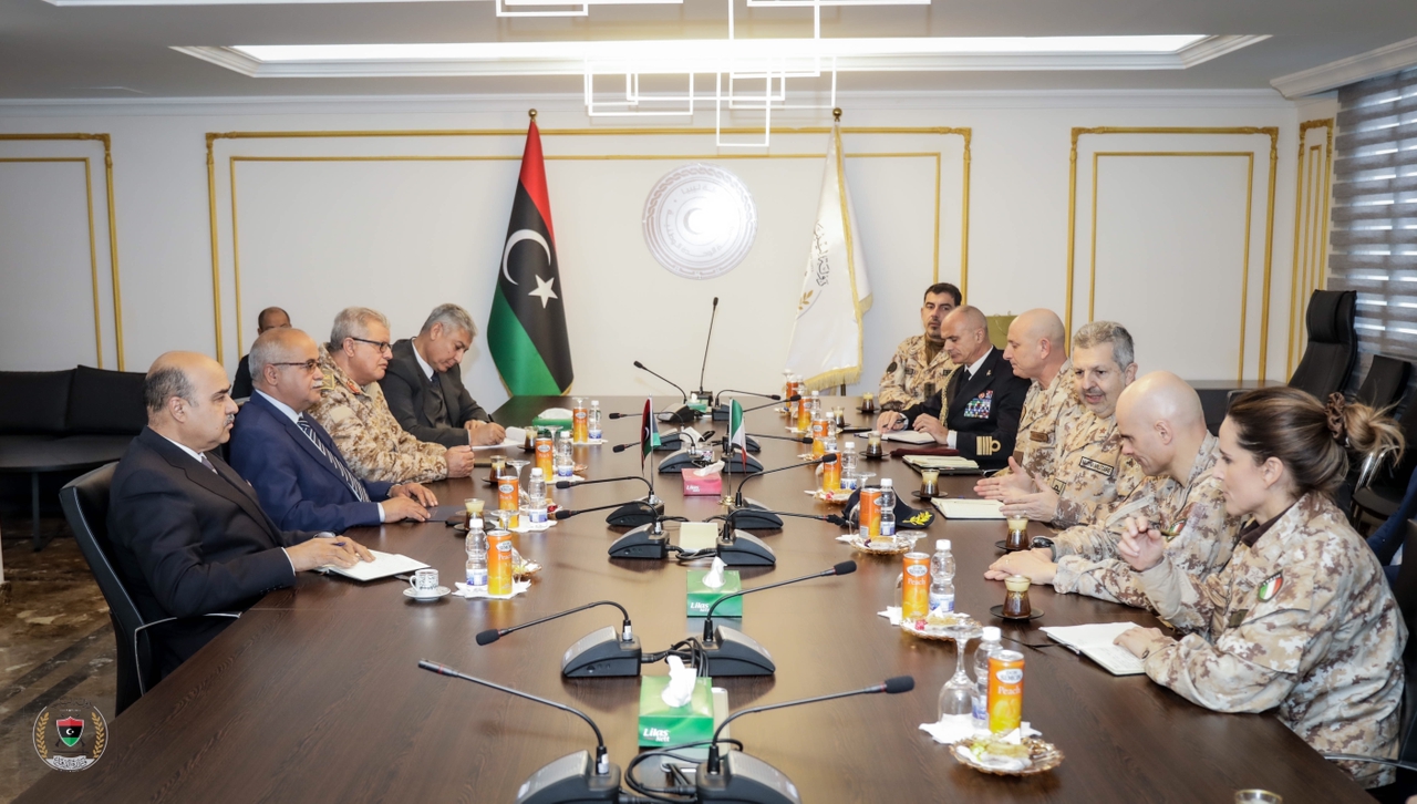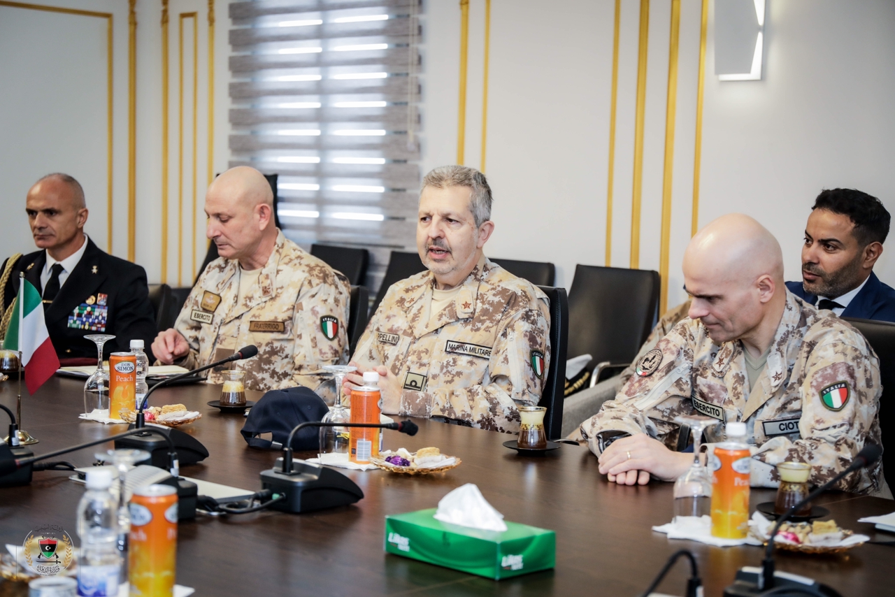 حيث افتُتح اللقاء بكلمة مدير مكتب وزير الدفاع التي رحّب خلالها برئيس أركان القوات المشتركة الإيطالية والوفد المرافق له، وأشاد بأهمية الاستمرار في التعاون خاصة في الملفات ذات الاهتمام المشترك من خلال لجنة التعاون المشتركة وفريق الدعم الفني والارتقاء ببرامج التدريب والعمل معا على تنفيذها بالداخل بالإضافة إلى العديد من النقاط التي طُرحت بما يخدم ويحترم سيادة البلدين. واختُتم اللقاء بتبادل إهداء اللوحات التذكارية المعبرة عن تأكيد الصداقة بين الجانبين الليبي والإيطالي.