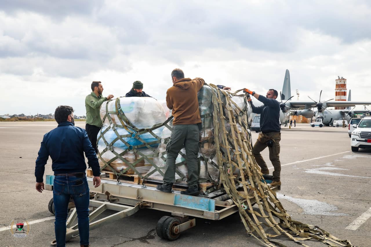 وصول شحنات من المساعدات التي تقدمها حكومة الوحدة الوطنية إلى الشقيقة سوريا لمطار بيروت الدولي ليل الأحد الموافق 12 فبراير 2023م محملة بالمواد الغدائية والطبية والألبسة والخيام، حيث كان في استقبالها سعادة السفير الليبي بسوريا وعدد من أعضاء السفارة للإشراف على استلامها وترحيلها إلى المدن المتضرر من الزلزال.