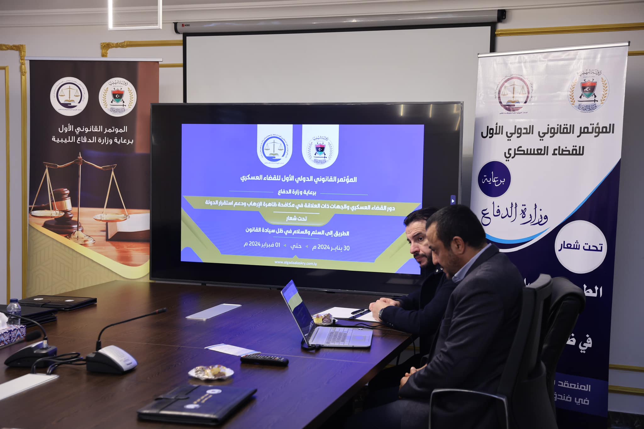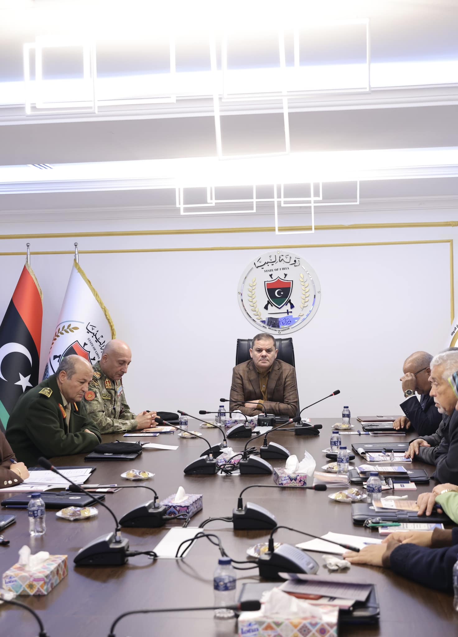 التقى يوم الثلاثاء الموافق 26 ديسمبر 2023م وزير الدفاع المهندس عبدالحميد الدبيبة عدداً من أعضاء اللجنتين التحضيرية والعلمية للمؤتمر القانوني الدولي الأول للقضاء العسكري تحت شعار الطريق إلى السلم والسلام في ظل سيادة القانون المزمع إقامته خلال الأيام المقبلة بحضور السيد رئيس الأركان العامة، ومدير مكتب وزير الدفاع، ورئيس الهيئة العامة للقضاء العسكري، حيث تناول اللقاء عرض ماتوصلت إليه اللجنتين من إعداد لتنفيذ هذا الحدث برعاية وزارة الدفاع، وألقى معالي الوزير كلمة عبر من خلالها على امتنانه وثنائه على الجهود المبذولة في سبيل الارتقاء بالمؤسسات القضائية والعمل بالقانون وإثبات دور الليبين في محاربة الإرهاب، وخير دليل عملية البنيان المرصوص، كما نوه بأن يهدف المؤتمر كذلك إلى تحقيق أن ليبيا دولة مدنية، دولة السلام والقانون…. واختتم اللقاء بعدد من الكلمات ألقاها الحاضرون في مضمون موضوع اللقاء.